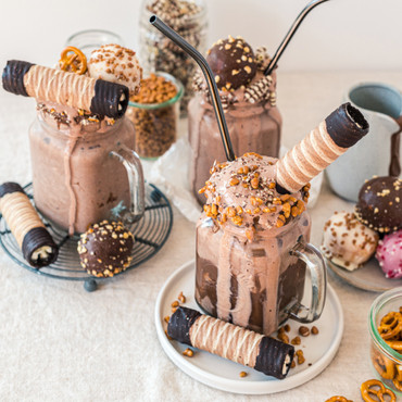 Für die nächste Bubble Waffle kommt einfach noch ein wenig Kakaopulver in den Grundteig. Nach dem Backen und Abkühlen wird die Waffel mit unserem Eiscremeklassiker Schoko (Art.-Nr. 1066) gefüllt. Um die volle Dröhnung Schokolade zu genießen, wird diese Kreation noch mit Zartbitterschokolade und unserer eismann Schokosoße (Art.-Nr. 2674) abgerundet. Die Erwachsenen-Variante erlaubt übrigens auch einen Schuss eismann Cappuccino Likör (Art.-Nr. 34239) eine unwiderstehliche Kombination wie wir finden.