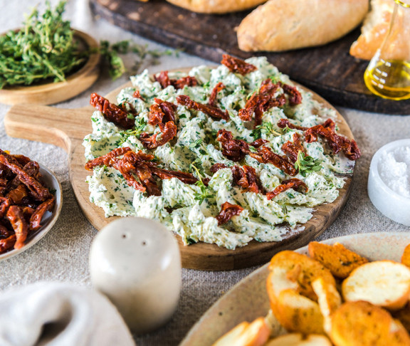 Für unser zweites Butter Board Rezept kommt zusammen, was zusammengehört: getrocknete Tomaten und Thymian. Einfach ein perfekte Aromenkombination, die noch getoppt wird durch die Zugabe unserer vielfältigen eismann Kräuter, die natürlich ganz leicht portioniert werden können. So entfallen aufwändiges Waschen und Hacken, aber der reine Kräutergeschmack bleibt.