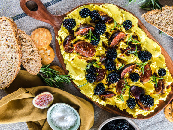 (Bild oben) Nicht nur, dass das Kurkuma eine wunderschöne Farbe auf das Butterbrett zaubert! Vielmehr verleiht sie unserer ersten Kreation das perfekte Aroma in Kombination mit Balsamico-Feigen aus der Pfanne. Dazu noch frische Brombeeren als Topping und schon steht das erste Butter Board.
