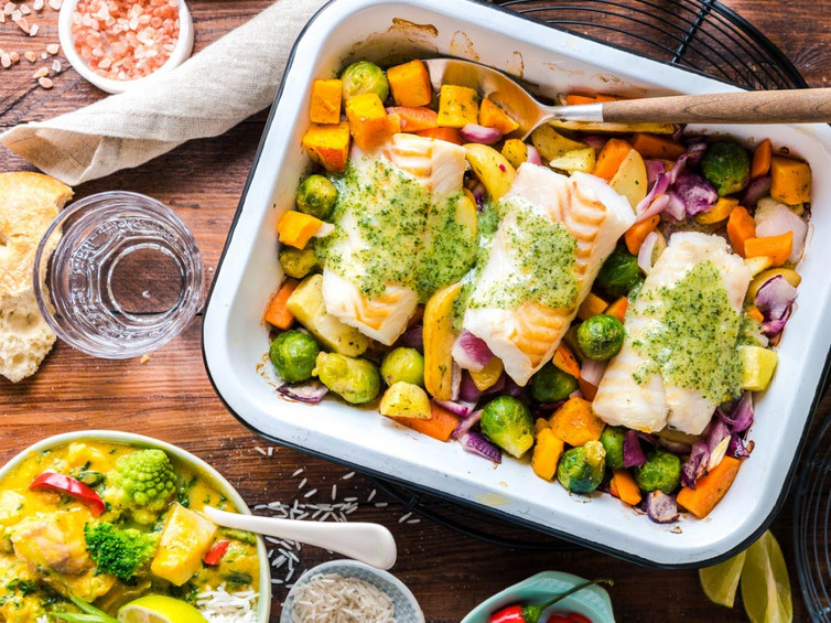 Genießer-Fischfilet mit Herbstgemüse vom Blech