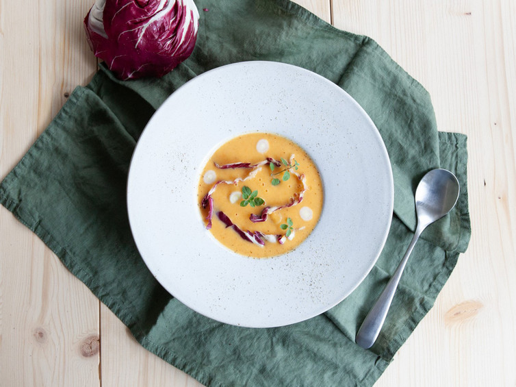 Die Kürbissuppe wird zurecht dafür geliebt, dass sie cremig ist. Diese Basis ist perfekt, um mit den unterschiedlichsten Toppings oder Beilagen kombiniert zu werden - ideal, wenn Menschen mit unterschiedlichen Geschmäckern oder Bedürfnissen am Tisch sitzen.