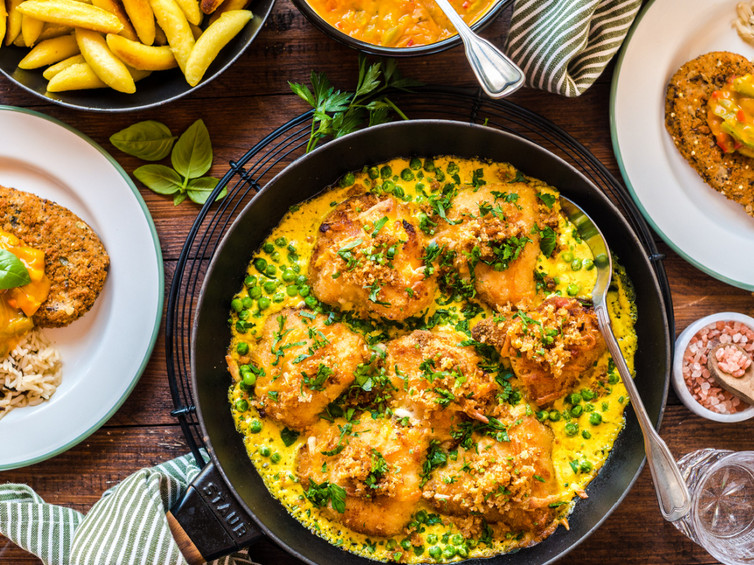 Cordon Bleu ist wohl einer der beliebtesten Schnitzel-Klassiker. Wir verfeinern unser eismann Mini-Hähnchen "Cordon bleu" mit einer Käse-Senf-Sauce, feinen Erbsen und Schnupfnudeln. Als Krönung geben wir auf die, im Ofen gegarten Schnitzel noch in Butter geschenkte Semmelbrösel. Geschmacklich wird man durch die Aromenkombination in den siebten Himmel katapultiert.