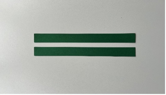 Das Papier in zwei gleich breite und lange Streifen schneiden. Wir empfehlen eine Breite von 3,5 cm. Das kann aber je nach gewünschter Größe des Sterns angepasst werden.