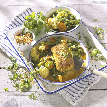 Curry und Currypulver zählen wohl zu den bekanntesten, typischen Gewürzmischungen aus Indien. Es handelt sich beim Curry also nicht nur um ein einzelnes Gewürz. In einer Curry-Gewürzmischung können bis zu 35 Gewürze enthalten sein. Und auch der Schärfegrad variiert von mild-süßlich bis hin zu feurig-scharf. In der indischen Küche bezeichnet der Begriff “Curry“ eine Vielzahl unterschiedlicher Gerichte, die mit Huhn oder Fisch, vegetarisch oder vegan zubereitet werden.