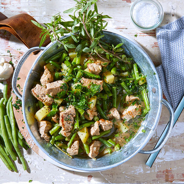Roh sind die grünen Hülsen übrigens giftig, da sie den Eiweißstoff Phasin enthalten, der Vergiftungserscheinungen hervorruft. Beim Erhitzen wird dieser zum Glück zerstört. Daher gilt: Auch für den beliebten Grüne-Bohnen-Salat mit Weißwein-Vinaigrette müssen die Hülsen vorher gut erhitzt werden. Grüne Bohnen machen zudem als Zutat in Eintöpfen oder in Butter geschwenkt eine gute Figur, vor allem in Kombination mit Bohnenkraut. Mit Räuchertofu als Speck und gebratenen Zwiebeln sind sie auch für Vegetarier:innen und Veganer:innen geeignet.
