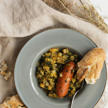 Grünkohl ist genau das richtige Gemüse, wenn es um das Zubereiten deftiger Gerichte geht. Wer es traditionell mag, findet im Winter in Grünkohl eine peppige Beilage zu Kartoffeln und Fleisch wie Kasseler, Bratwurst oder Kohlwurst. Auch mit Speck, Zwiebeln, Pfeffer und Salz kochen ihn viele Menschen, da diese Zutaten hervorragend zu den zarten Grünkohlblättern schmecken. Ein paar Kartoffeln dazu garen – fertig ist ein kräftigendes Wintermenü.