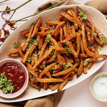 Ein weiterer Vorteil ist, dass du mit tiefgekühlten Süßkartoffeln Zeit sparst. Aus dem Tiefkühlfach hast du sie stets griffbereit und kannst sie gleich verwenden: Zum Beispiel einfach in der Pfanne anbraten oder im Backofen kross backen.
