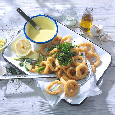 Für ein authentisch mediterranes Genusserlebnis sorgen diese köstlichen panierten Tintenfischringe. Innen saftig und bissfest, außen wunderbar kross ist die Spezialität aus dem Meer schnell mit selbstgemachter Aioli oder einem frischen Salat serviert. Bereits vorgebacken werden sie in Fritteuse oder Backofen einfach zubereitet.