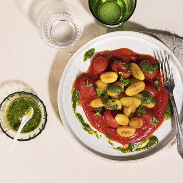 Für eine Portion ca. 250 g: 2 Liter leicht gesalzenes Wasser zum Kochen bringen, 4 - 5 Minuten al dente" (bissfest) garen. Abgießen und die Gnocchi gut abtopfen lassen."