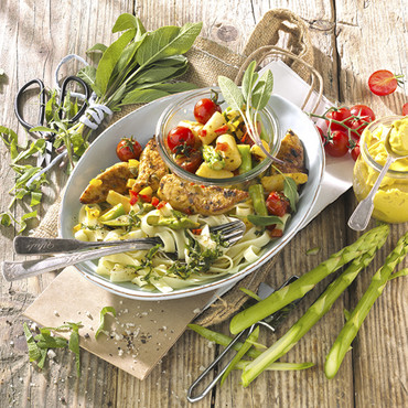 mit etwas Fett, bei kleiner bis mittlerer Hitze, mit Deckel, ca. 8 Minuten, ab und zu vorsichtig wenden, nach Belieben würzen (für 150g).