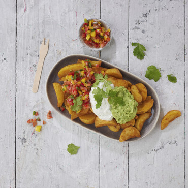 Der maximale Kartoffelgenuss - unsere Kartoffel-Wedges aus ganzen Kartoffelspalten mit aromatisch-krosser Schale. Für den pikanten Genuss sind die Wedges mit Chili, Pfeffer und Paprika fein abgeschmeckt. Die herzhafte Beilage eignet sich auch hervorragend als Hauptgericht zusammen mit verschiedenen Dips wie z.B. Salsa-Sauce, Guacamole oder Sauerrahm.