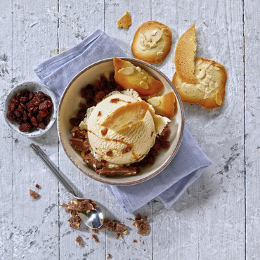 Der charakteristische Geschmack von Malaga-Eis entsteht durch in Rum eingelegte Rosinen. In Kombination mit einer intensiven Sauce mit Rumgeschmack bietet die Eiscreme einen besonders vollmundigen Genuss. Ob pur oder zusammen mit unseren anderen erlesenen Eissorten – diese köstliche Spezialität verwöhnt anspruchsvolle Naschkatzen.