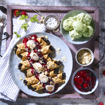 Cremige Pistazien Eiscreme mit gerösteten und gehackten kalifornischen Pistazien. Vollmundig und nussig eignet sie sich ideal für elegante Eisbecher, raffinierte Desserts oder als delikates Topping für warme Crêpes und Kuchen.