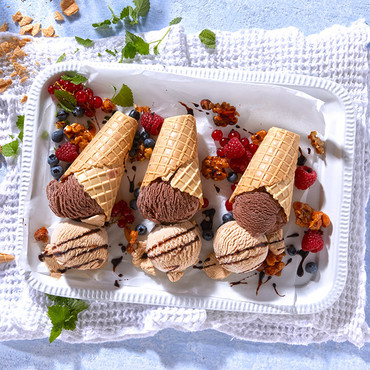 Mehr Schoko geht kaum. Das zartschmelzende, feine Eis mit Schokoladengeschmack erhält durch knackig-große Haselnuss-Milchschokoladen-Splits intensive geschmackliche Unterstützung. Perfekt für den puren Genuss sowie als köstliche Basis raffinierter Rezeptideen, die nicht nur Kindern Spaß machen. Entdecke unsere dekorativen Kreationen jetzt auf eismann.de.