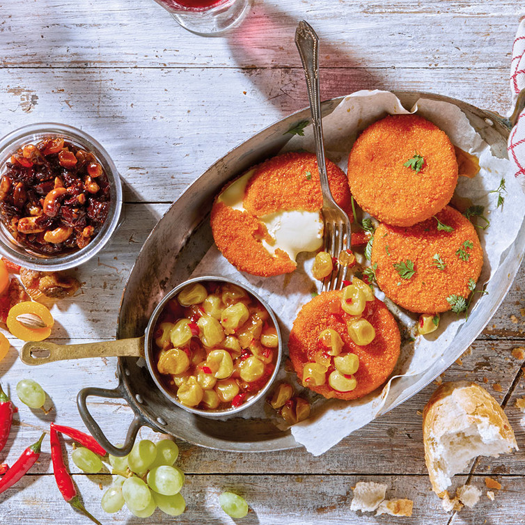Camembert mit Trauben- und Tomaten-Aprikosen-Nuss Chutney