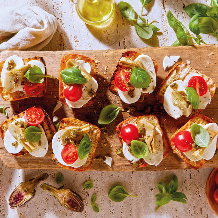 Crostini mit Artischocken und Mozzarella