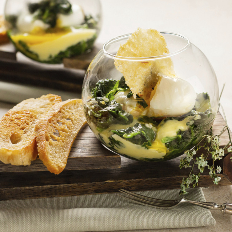 Eier im Glas mit Parmesanspinat (von Johann Lafer)