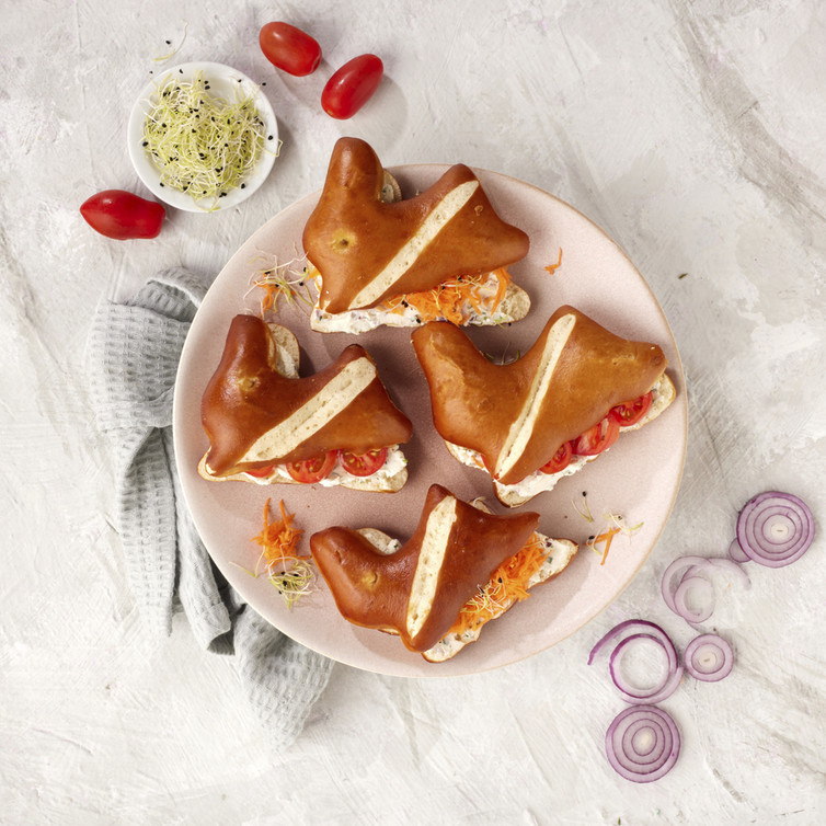 Die Laugenhäschen bei Zimmertemperatur 1 Stunde auftauen lassen.