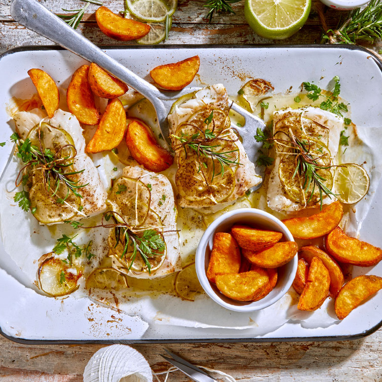 Für die Zubereitung im Backofen den Fisch in eine gefettete Auflaufform legen und im vorgeheizten Backofen bei 200° C Ober- und Unterhitze ca. 30 Minuten zubereiten.