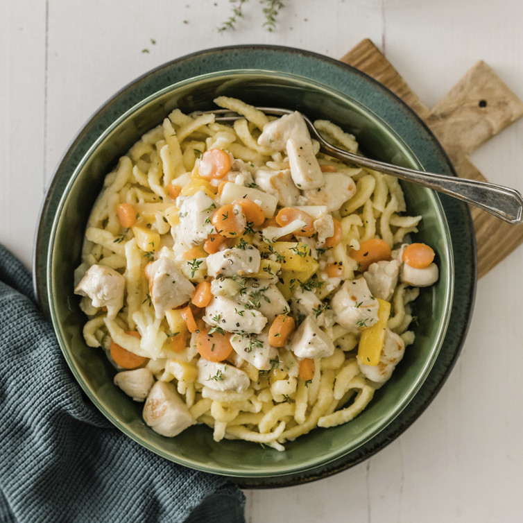 Hähnchenragout mit Spätzlen und Landhaus Buttergemüse