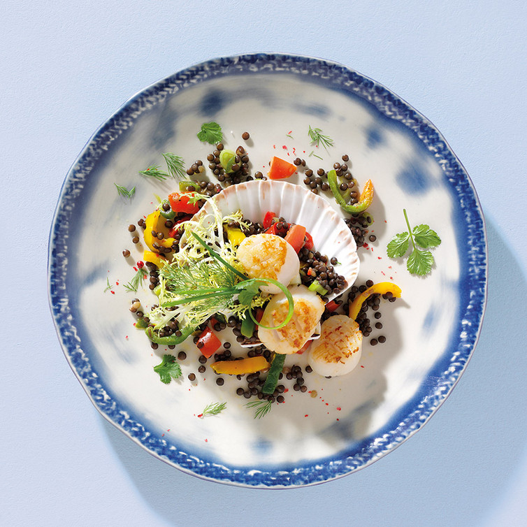 Jakobsmuscheln auf Beluga Linsen Salat