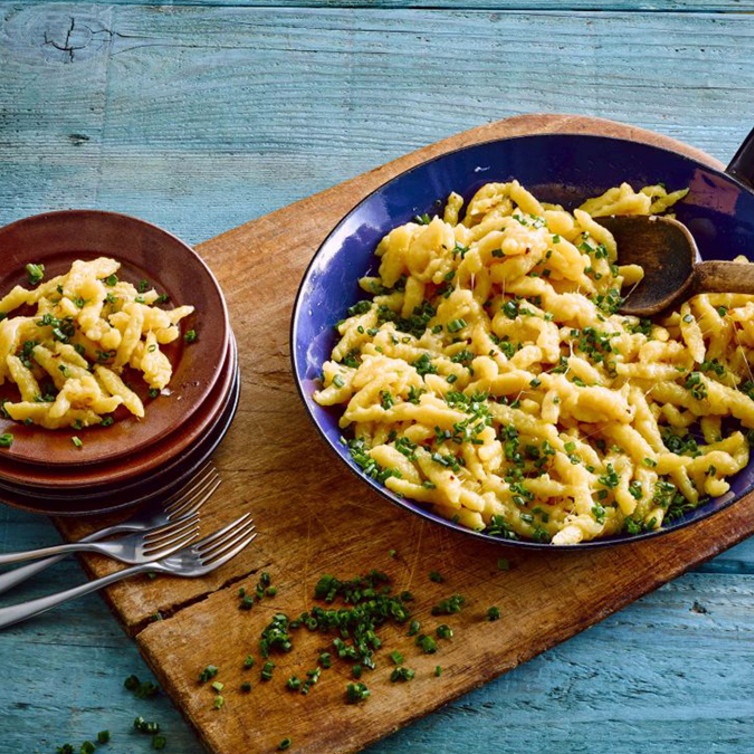 Die Eierspätzle schon vor dem Film aus der Truhe nehmen und auftauen lassen.
