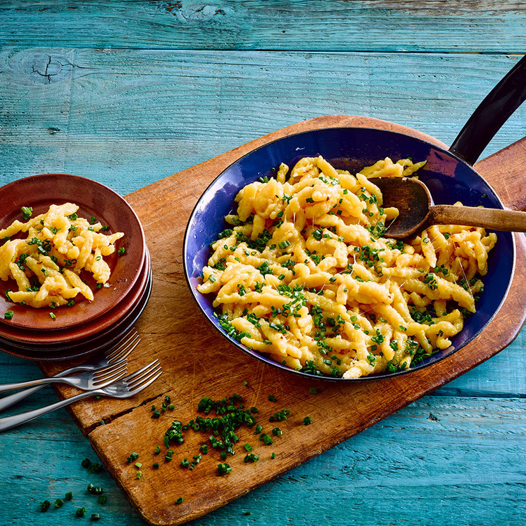 Käsespätzle mit Röstzwiebeln und Petersilie