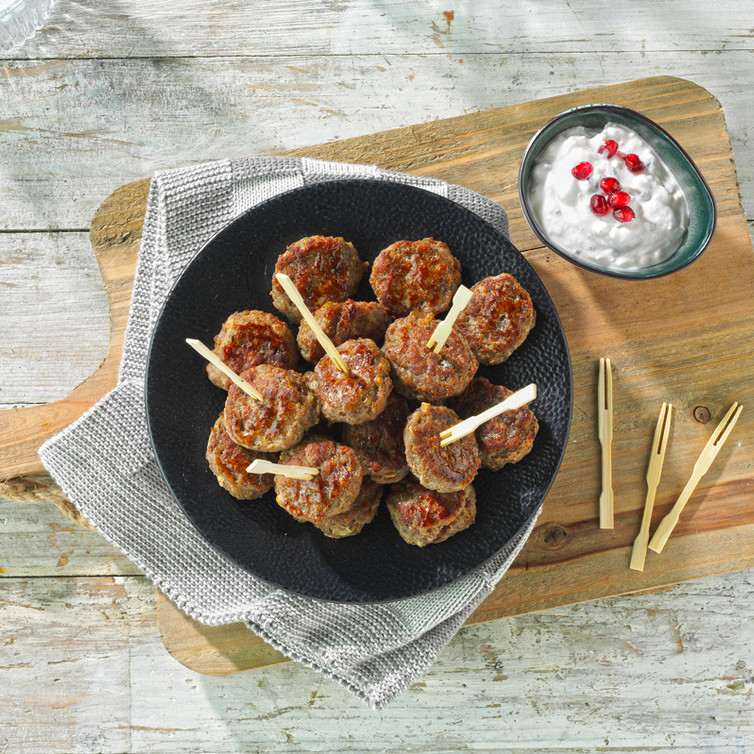 Mini-Frikadellen mit Granatapfel-Joghurt-Dipp