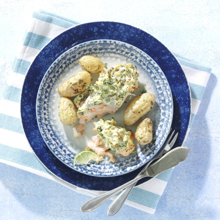 Ofen-Lachsfilet mit Gemüse-Schmand-Haube