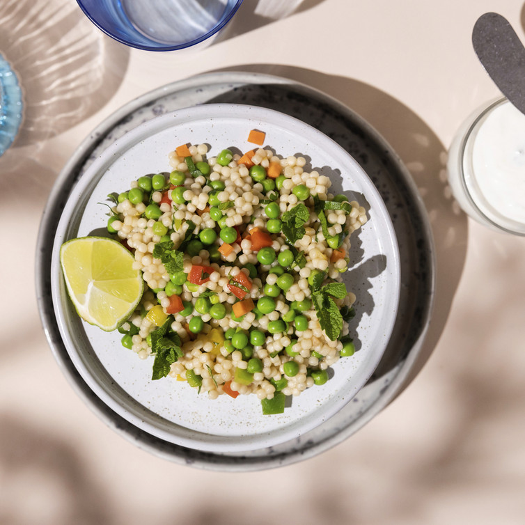 Perlcouscous-Salat mit Erbsen und Minzjoghurt (von Johann Lafer)