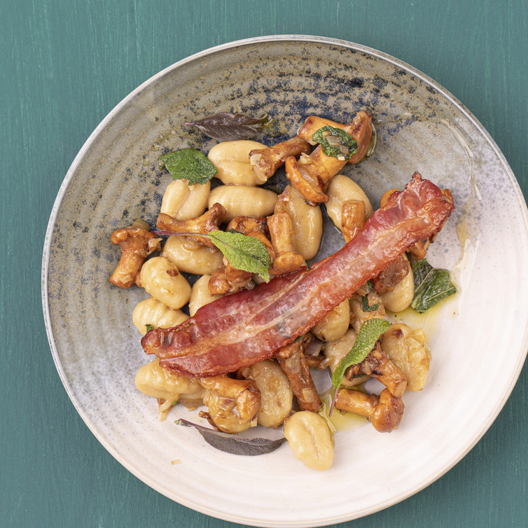 Pfifferlinge unter die gegarten Gnocchi heben und mit etwas Olivenöl beträufeln. Zusammen mit den Speckstreifen servieren.