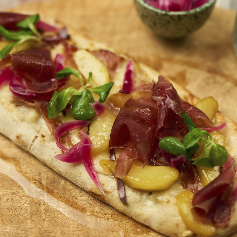 Pimp your Pizza mit karamellisierter Birne & Bündner Fleisch