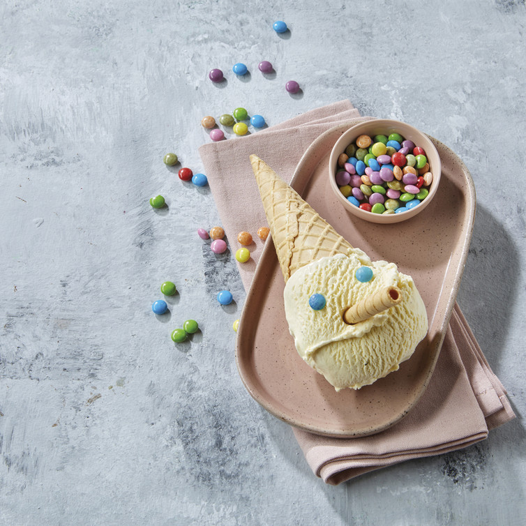 4 große Eiskugeln portionieren und diese wieder in den Freezer stellen.