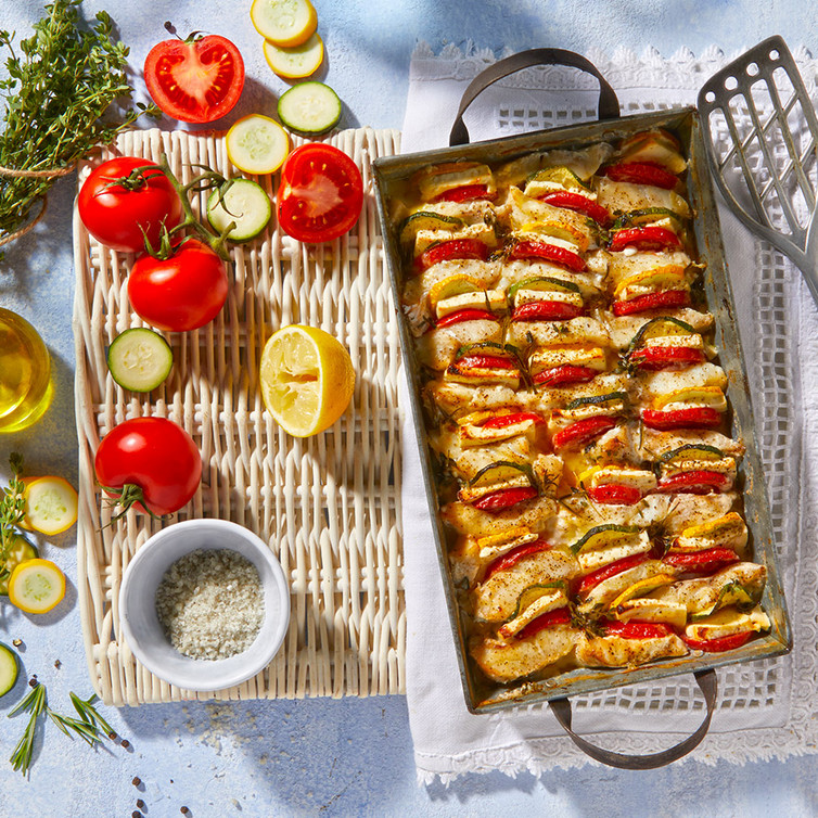 Rotbarsch-Gemüse-Gratin mit Feta