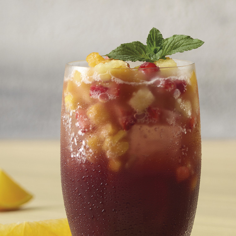 Wer denkt, Sangria kommt aus Griechenland, liegt falsch – der legendäre Sommerdrink stammt natürlich aus Spanien. Aber wir machen’s dieses Mal à la française mit eigener, eleganter Note. Dazu die kleinen bunten Früchte-Minis – klein, aber oho! – die jedem Glas das gewisse Etwas verleihen. So treffen französischer Chic, spanische Leichtigkeit und sommerliche Fruchtfreude aufeinander. Das Ergebnis? Ein Sommerdrink, der Urlaubsträume weckt, egal, ob auf der Terrasse, im Garten oder am Pool. Santé, cheers und olé!