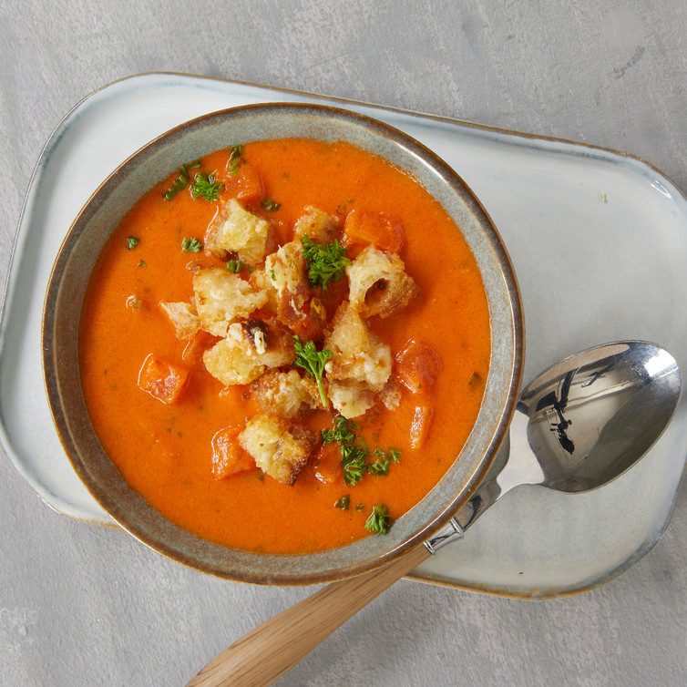 Wenn Du auf der Suche nach einem schnellen und einfachen Wohlfühlgericht für die ganze Familie bist, dann ist diese Tomatensuppe mit Parmesan-Croutons genau das Richtige für Dich! Mit nur 30 Minuten Zubereitungszeit und einem leichten Schwierigkeitsgrad zauberst Du mit wenigen Zutaten ein köstliches Gericht. Die Zubereitungsform ist klassisches Kochen – unkompliziert und perfekt für jeden Anlass, ob als Mittagessen, Abendessen oder kleiner Snack zwischendurch.
