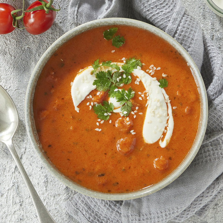 Wenn es mal schnell gehen soll, aber trotzdem richtig gut schmecken darf, ist die Tomatensuppe mit Tahini-Sauerrahm die perfekte Wahl! In nur 20 Minuten kannst Du mit wenigen Handgriffen ein echtes Wohlfühlgericht zaubern. Dieses Rezept ist leicht in der Zubereitung, wird ganz klassisch im Topf gekocht und ist damit ideal für unkomplizierte Mittag- oder Abendessen – ob für Dich allein oder wenn Freunde vorbeikommen.