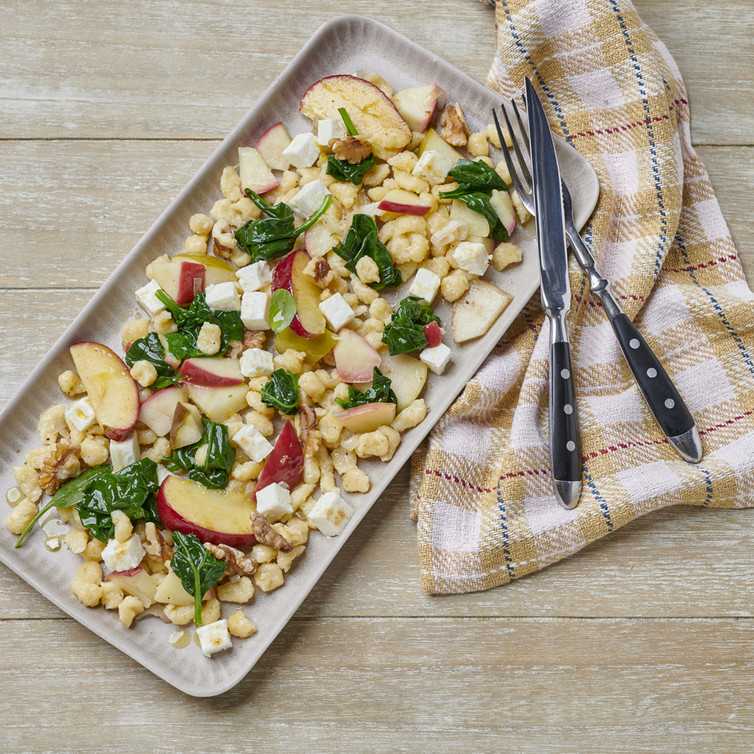 Überbackene Bio-Knöpfle mit Spinat und Fetakäse