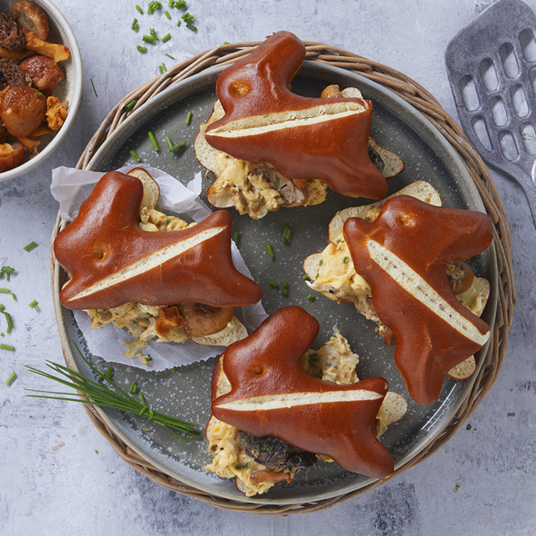 Die Laugenhäschen mit Rührei belegen und noch warm genießen.