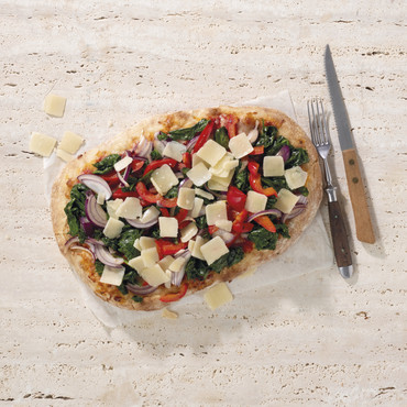 Johanns Pizza mit mediterranem Gemüse aufgelafert (von Johann Lafer)
